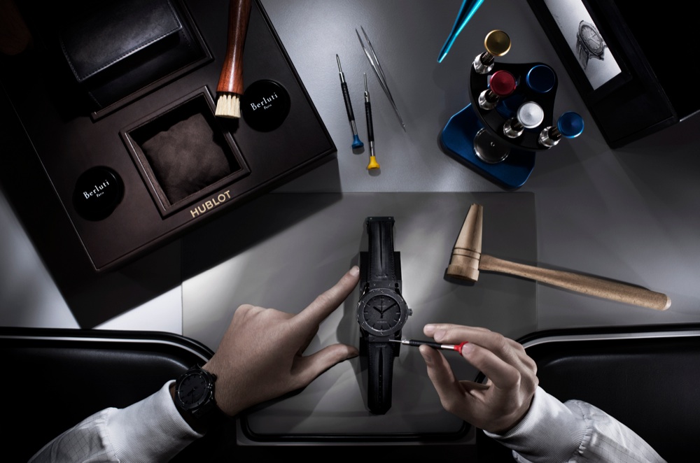 Hublot si veste del cuoio Venezia di Berluti per dar vita al Classic Fusion, un’edizione limitata che unisce le expertise delle due maison. D’altra parte l’abbinamento sapiente di orologio e scarpe è emblema di eleganza e definisce lo spirito del gentleman classico. Il cuoio Venezia di Berluti dall’esclusiva conciatura è frutto dell’ingegnosità di Olga Berluti. Hublot ha realizzato l’exploit di rivestire i suoi quadranti con questa materia nobile e viva. Questa operazione complessa e delicata richiede che si riescano a neutralizzare le componenti naturali del cuoio rendendo inimitabile ogni quadrante. Un’edizione limitata proposta in due modelli: il Classic Fusion Berluti All Black con cassa 45 mm in ceramica nera e movimento meccanico e ricarica automatuca HUB110 impreziosito da un quadrante in cuoio nero (il modello è in limited edition a 500 esemplari), e il Classic Fusion Berluti Scritto: 250 cinturini ritagliati nel cuoio di vitello Venezia color tabacco con una scrittura ispirata ad una calligrafia del XVIII secolo.