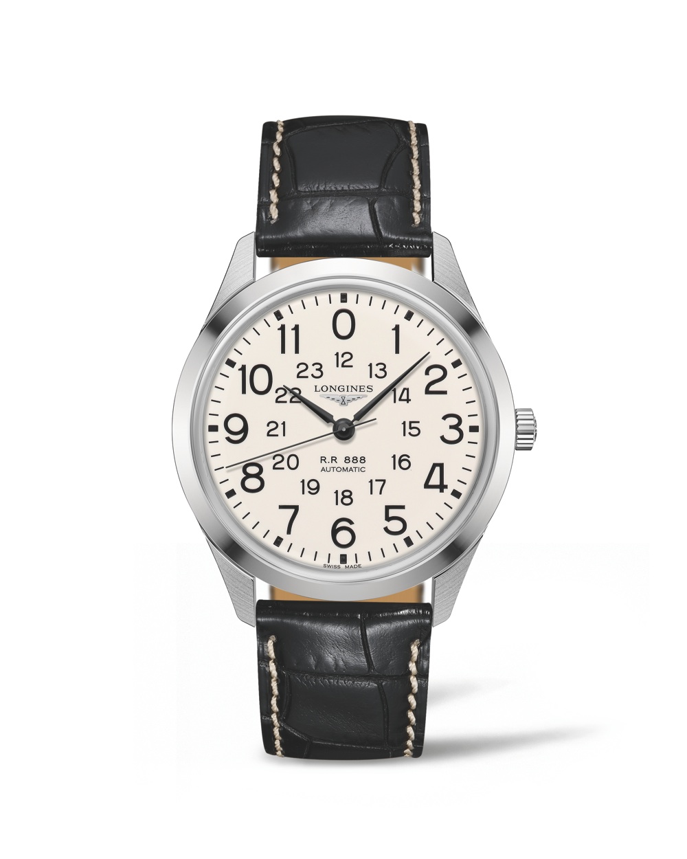 Longines va al Museo Longines a Saint-Imier per trarre ispirazione per il nuovo RailRoad. Il brand celebra così la propria tradizione nel settore degli orologi per le ferrovie proponendo una riedizione di un segnatempo degli anni ’60. La cassa in acciaio del diametro di 40 mm ospita il calibro automatico L888.2 prodotto esclusivamente per Longines. Il quadrante bombato bianco sporco garantisce leggibilità ed esibisce un giro delle ore con grandi numeri arabi neri, con uno 0 al posto del 12 e una scala delle 24 ore impreziosita da lancette nere laccate. Ha fondello con incisione finemente lavorata a mano, che prende ispirazione dalle decorazioni originali degli orologi da tasca degli anni ‘20 destinati alle ferrovie e cinturino in pelle di alligatore total black.