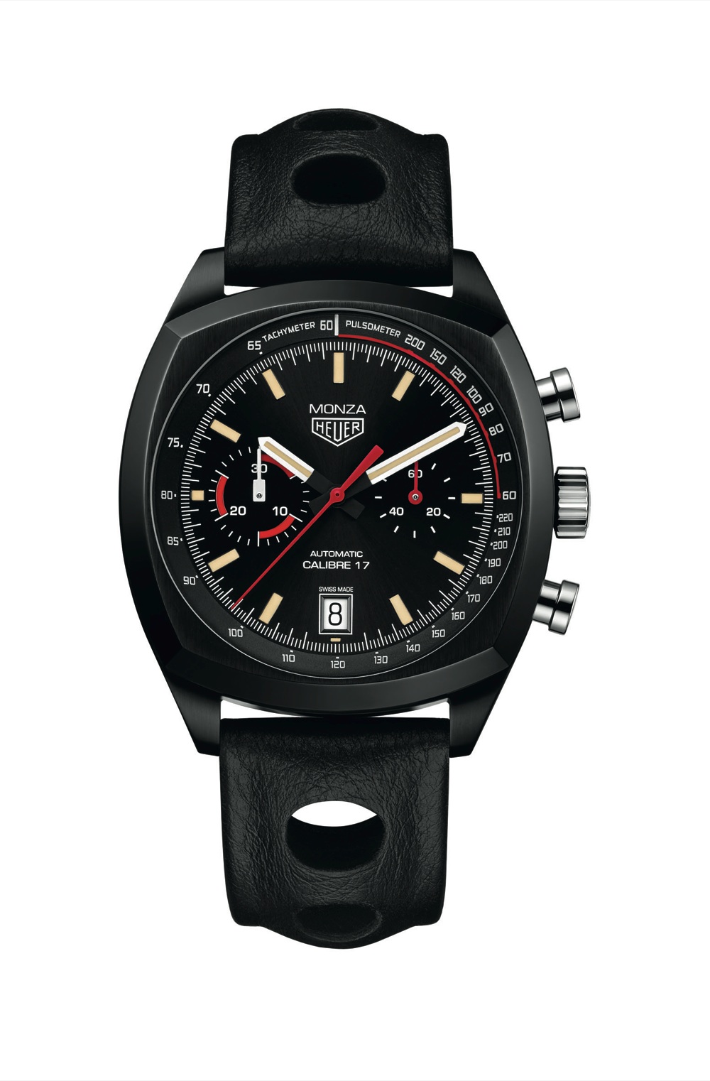 Tra le novità più interessanti ecco Tag Heuer con due edizioni davvero speciali. Il primo è il TAG Heuer Carrera Heuer-02T, cronografo automatico certificato COSC, con tourbillon volante in titanio e carbonio, simbolo di lusso accessibile. La versione Black Phantom ha cinturino in cocco o caucciù ed è in edizione limitata di 250 esemplari numerati. Poi un pezzo di storia: il cronografo Heuer Monza, 40 anni di vita celebrata con una riedizione che rispecchia il DNA di questo iconico orologio. La riedizione 2016 riprende due funzioni chiave con pulsometro e scala tachimetrica ed esibisce lo stesso carattere originale. La cassa coussin originale è protagonista, anche oggi interamente nera, esattamente come nel modello storico, con lancette di ore e minuti laccate nere e bianche proprio come l’originale. Questo vale anche per gli indici in SuperLuminova TM arancio vintage. Ha cassa 42 mm in titanio di grado 5, cinturino ‘super racing’ in pelle di vitello pieno fiore nera impunturata che richiama il disegno dei volanti a tre razze delle auto dell’epoca e cronografo automatico calibre 17, con due contatori cronografici a ore 3 e 9, non troppo vicini tra loro per conferire armonia al quadrante.