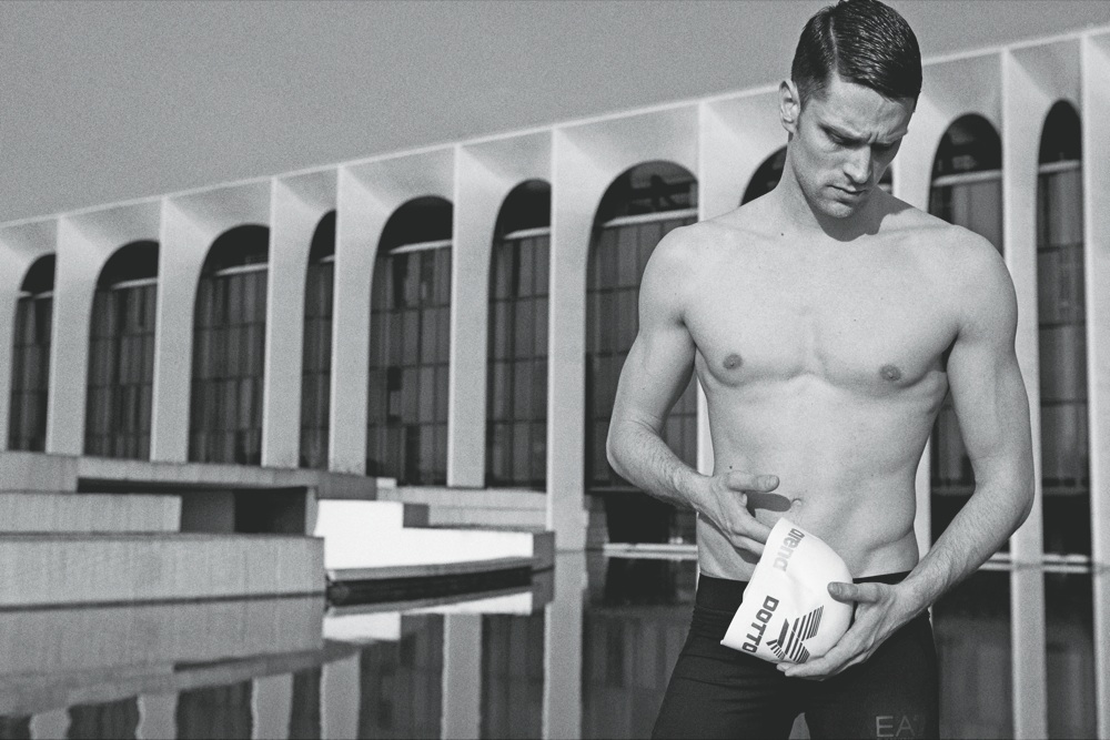 Omaggio a Niemeyer, che disegnò la città brasiliana (e un noto palazzo meneghino), sfondo di questo servizio con il campione di nuoto Luca Dotto