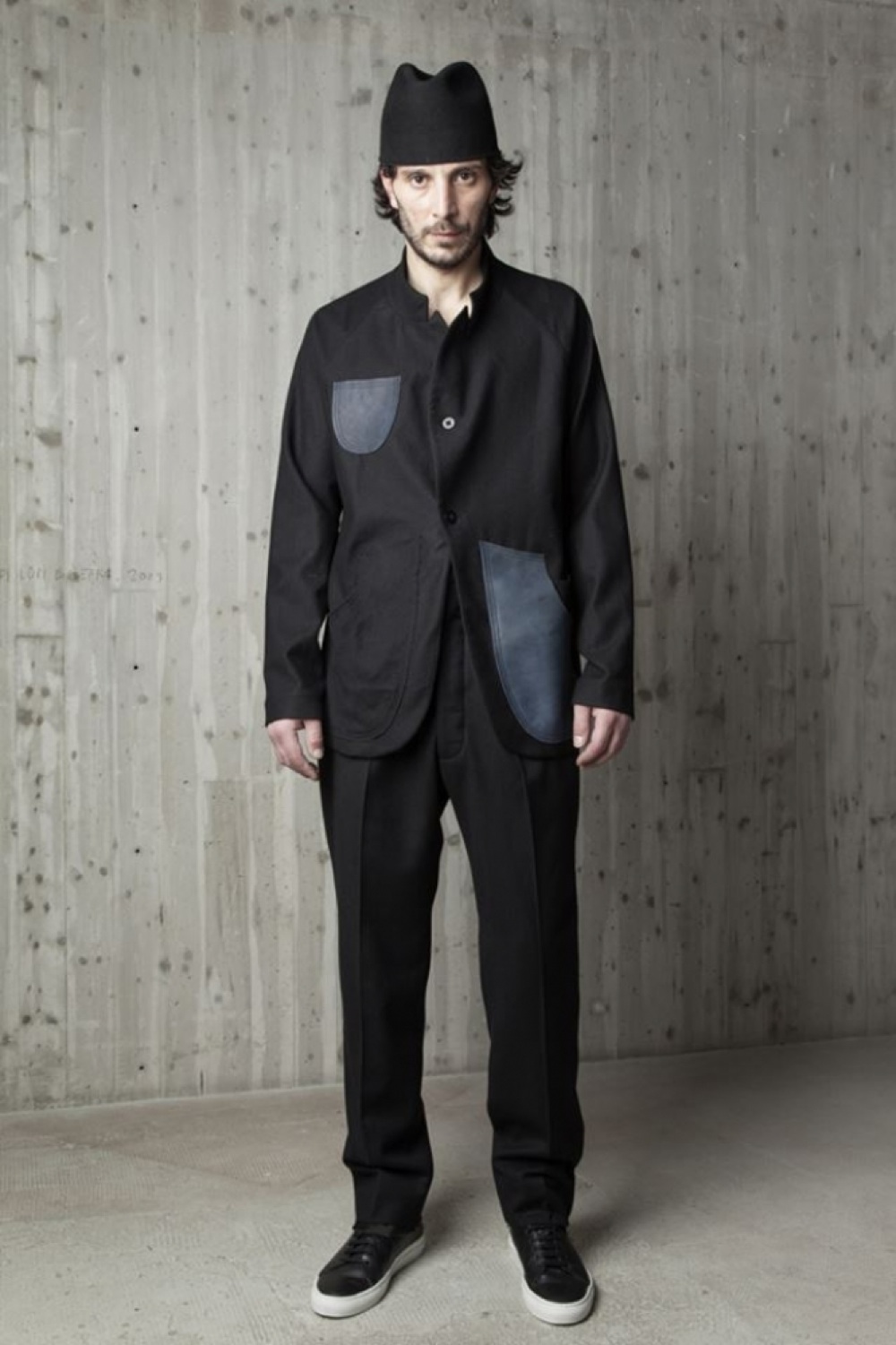 Lucio Vanotti, bergamasco di nascita ma milanese per affinità elettiva, ha lanciato il marchio che porta il suo nome nel 2012. Discreto, sfuggente per natura, poco amante delle luci della ribalta, lascia che siano i suoi vestiti a parlare per lui: il rigore delle proporzioni, il monocromo, nessuna concessione al superfluo e una chiara fascinazione verso l’architettura razionalista, i suoi capi sono esercizi di uno stile riduzionista, contemporaneo ma dal fascino antico e casalingo. Per quest’inverno infatti, gli elementi streetwear come zaini, cappelli e felpe dalla stampa pixelata che richiama i tappeti persiani, si portano con capispalla rigorosi, ma dai volumi morbidi, che si allacciano come vestaglie o con le maniche ampie come kimono. I colori sono sobri ma d’impatto, l’eleganza è persistente ma sottotraccia per riservatezza.
