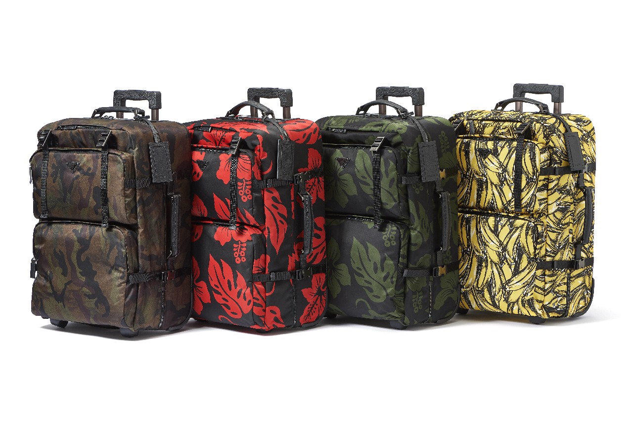 Divertenti invece le stampe che Prada ha scelto per i trolley dela sua nuova collezione invernale. Una capsule viaggio che include un quattro ruote che amplia il dialogo tra due materiali istituzionali, la pelle Saffiano e il tessuto gabardine, con finiture in metallo nero e un due ruote che eredita le linee e i dettagli estetici dell’iconico zaino Prada: corpo morbido, capacità espandibile e compartimenti interni studiati per renderlo adatto ai viaggi di piacere e d’affari. Entrambi i trolley sono dotati di una nuova tecnologia: il dispositivo denominato “Bag tracker”, che connette il bagaglio con lo smartphone del proprietario attraverso una nuova applicazione.