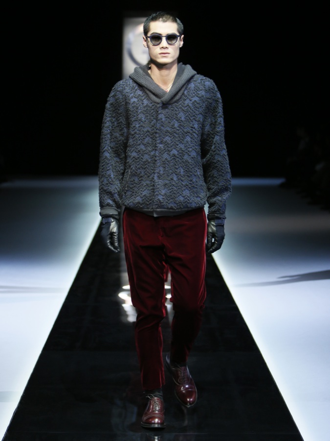 Dalle passerelle delle collezioni maschili per l’autunno-inverno 2013-14 allo streetstyle metropolitano. Netta dichiarazione di inizio inverno e simbolo di eleganza, il velluto è un tessuto ereditato da una classe di epoche passate. Riflette la luce come lamine argentate. Corduroy, ovvero a coste, declinato nei toni del vino barricato o delle notti più cupe, ha arredato dimore e vestito nobili.Oggi gli stilisti lo reinterpretano su capospalla e accessori come a voler raccontare il ritorno di un’eleganza sfarzosa nei materiali, ma sobria nelle linee.