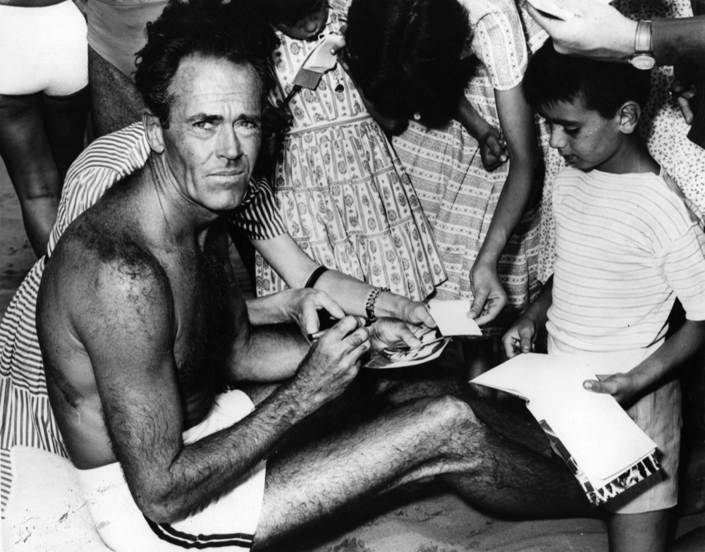 La leggenda holliwoodiana Henry Fonda partecipa al Festival concedendosi ai fan e ai paparazzi, che lo seguono anche in spiaggia (Photo by Keystone/Getty Images)
