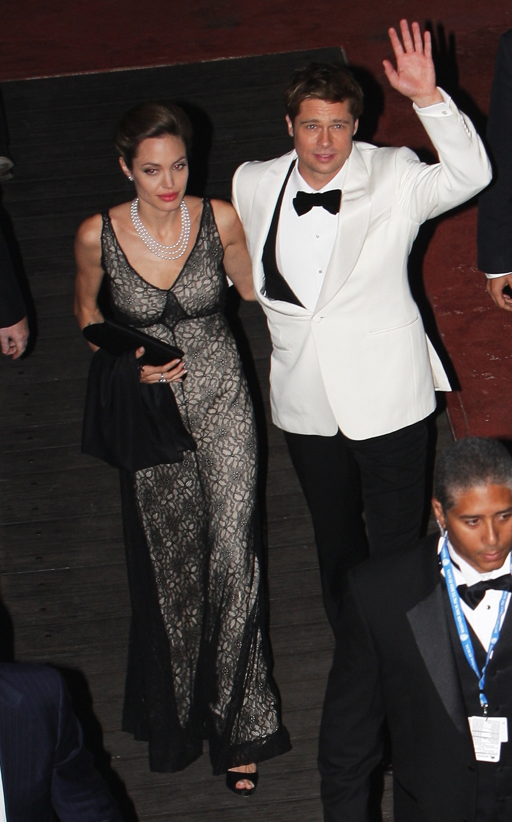 VENICE, ITALY – SEPTEMBER 02: Brad Pitt and Angelina Jolie arrive at The Assassination Of Jesse James By The Coward Robert Ford premiere in Venice during day 5 of the 64th Venice Film Festival on September 2, 2007 in Venice, Italy. (Photo by Franco Origlia/Getty Images) *** Local Caption *** Brad Pitt;Angelina Jolie