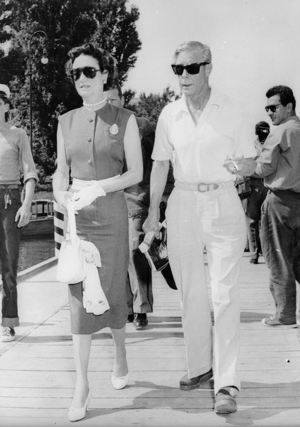 Gli anni cinquanta sono quelli della rinascita del festival, del lancio del cinema giapponese e del trionfo del neorealismo italiano: un ritrovo annuale imperdibile, a cui partecipa anche Edoardo VIII, nel 1956, accompagnato da sua moglie Wallis Simpson (Photo by Keystone/Getty Images)