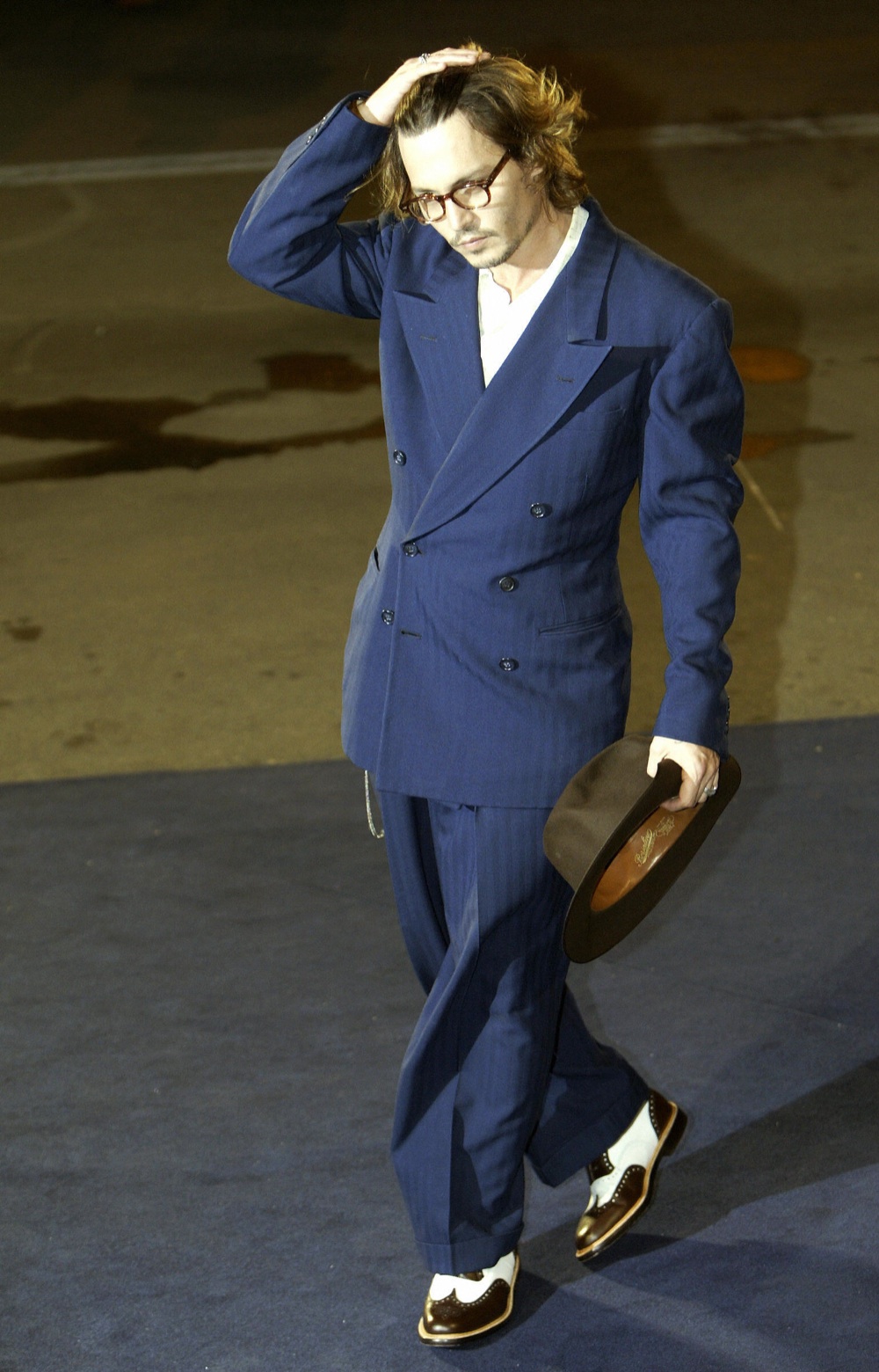US actor Johnny Depp arrives for the premiere of his film at Venice Lido 28 August 2003. Depp stars in director Robert Rodriguez’s out-of-competition movie “Once upon a time in Mexico”. The 60th international Venice Film Festival opened Wednesday with Woody Allen’s out-of-competition movie ” Anything Else ” and runs until 6 September with 20 films in competition for the Golden Lion main prize and 18 films in the experimental counter-current section. (Photo credit should read VINCENZO PINTO/AFP/Getty Images)