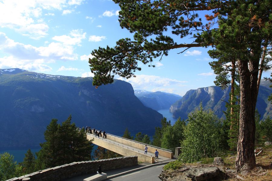 Sulla strada di montagna ‘Aurlandsvegen‘, che connette Aurland e Lærdal, a 300 km da Oslo, si trova una piattaforma a 650 metri d’altezza che domina il fiordo di Aurland. In legno e acciaio, permette ai visitatori di sporgersi per 30 metri nell’aria.
