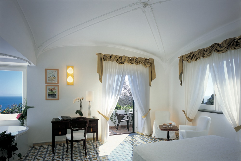 Svago, piacere, sogno: tre parole per riassumere lo spirito dell’hotel Santa Caterina di Amalfi. Giardini secolari e vista mozzafiato sul golfo di Salerno. Ascensori scavati nella roccia portano gli ospiti fino al beach club privato con un’ampia piscina di acqua di mare. I peccati di gola si consumano in due ristoranti dove assaggiare le specialità locali. Ma la vera chiccaèla suite ‘follia amalfitana’ con la sua mini piscina tonda con vetrata ‘vista baia’ per bagni ‘bollenti’. E che dire della stanza ‘Giulietta e Romeo’ con terrazzino a picco sul mare e piscina privata a sfioro per turbolente fughe d’amore.