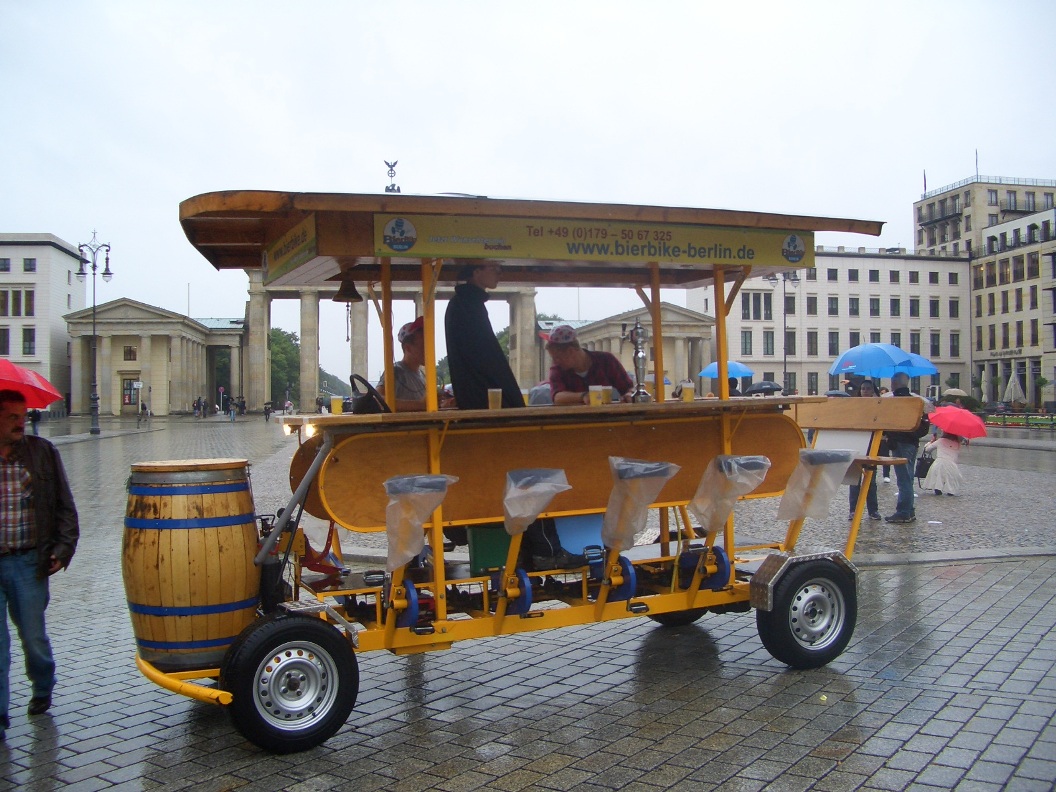 Beer bike a Berlino A Berlino la birra si gusta in bicicletta, tutti insieme in un super-tandem attrezzato e senza paura di prendere la multa. L’idea, nata a Berlino e poi estesa in altre città da Amsterdam a Madrid è chiamata Beer Bike Berlin, una sorta di carrozzone a pedali dotato di stereo e bevande alla spina che attraversa le strade del centro e che può ospitare fino a sedici pedalatori. Ogni avventore si siede al bancone di legno sugli sgabelli sistemati uno di fronte all’altro come se fosse in un pub e, mentre spinge sui pedali, altri spillano e bevono birra, analcolici o spumante. Si parte dalla Porta di Brandeburgo facendo uno stop e un brindisi davanti ai monumenti principali.