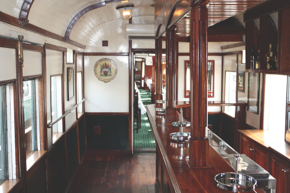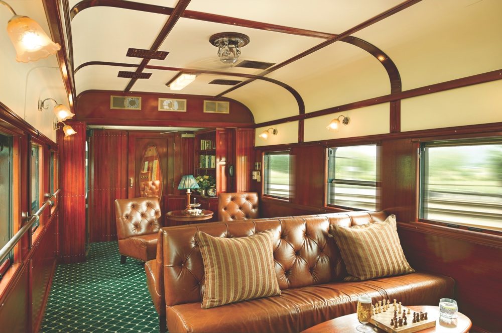 Situata nella parte posteriore del treno, la carrozza di osservazione in stile coloniale offre un punto di osservazione privilegiato durante il giorno e cocktail e intrattenimento al calare del buio (belmondimages.com)