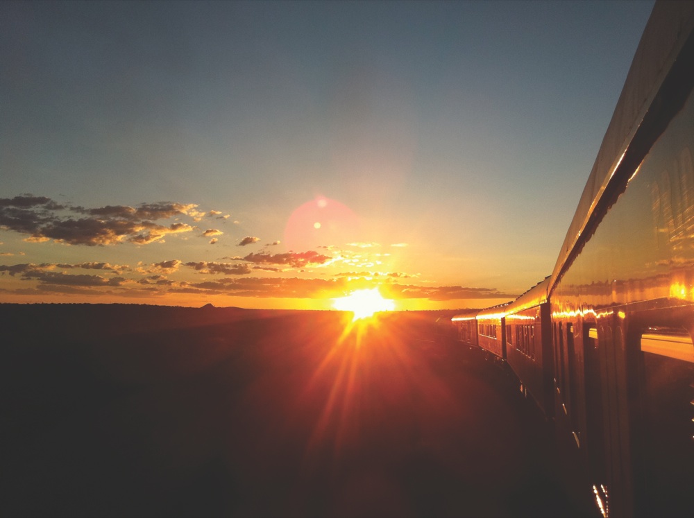 Per tre giorni e due notti si attraversano i suggestivi paesaggi del Red Centre, passando dalle morbide pianure di Adelaide alle meraviglie naturali del cuore rosso o viceversa, attraverso foreste verdeggianti, distese di terra bruciata dal sole, ripide formazioni rocciose, il tutto incorniciato da un cielo blu cobalto (Great Southern Rail)