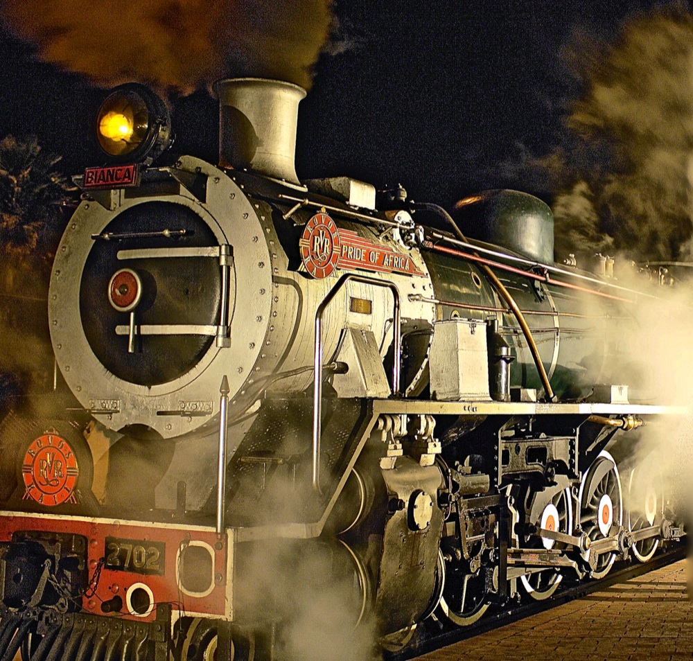 Sbuffi di vapore e champagne. Attraversa cinque Paesi. Da Cape Town il Pride of Africa si dirige verso Pretoria, poi piega a ovest verso la savana attraversando il Botswana e toccando lo Zimbabwe, e poi in direzione delle Cascate Vittoria. Superata la capitale dello Zambia, Lusaka, prosegue fino a Tazara Station di Dar Es Salaam in Tanzania. Due settimane a bordo del treno a vapore più elegante a sud dei tropici. E’ tutto un fiorir d’ottoni e legni pregiati, atmosfere anni’30, cristalli, argenterie, coppe di champagne e signori ben vestiti. Fiore all’occhiello la carrozza ristorante dove si assaggiano raffinati menu e quella del bar per alcolici, cocktail, tisane e caffè. Si fanno quattro chiacchiere, tra luci soffuse e musica e poi a dormire nelle cabine fresche e spaziose mentre fuori il vento notturno pettina l’erba della savana.