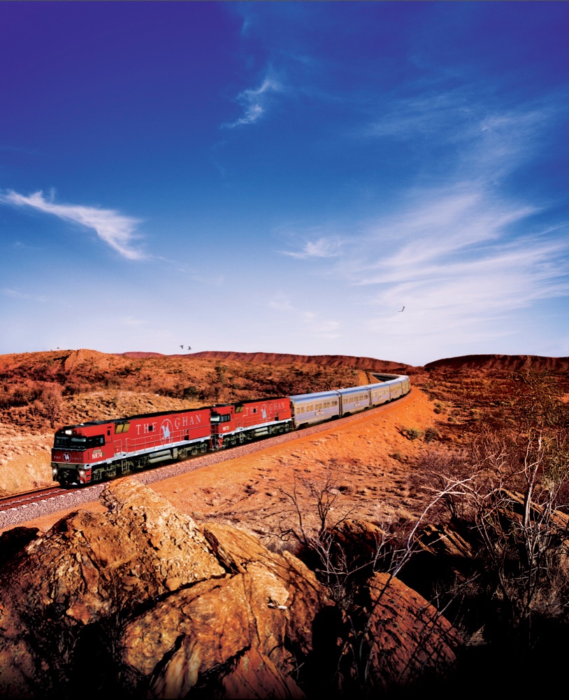 Il Ghan, il più lussuoso tra i grandi treni australiani. Il nome è un'abbreviazione del suo precedente soprannome The Afghan Express, che deriva dalle carovane di cammelli afghani che faticosamente percorrevano la stessa tratta prima dell'avvento della ferrovia (Great Southern Rail)