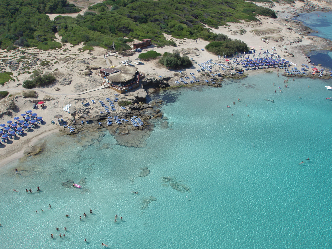 Sabbia finissima tra rocce digradanti verso il mare, disegnate a formare piscine naturali di acqua turchese, e persino uno scoglio attrezzato con lettini: molti riconoscono nel film Mine Vaganti di Ferzan Ozpetek questa suggestiva spiaggia della Baia di Gallipoli. Ultima moda, la possibilità di prenotare lettini acquatici galleggianti con calotta per ripararsi dal sole. Sonorità jazz e non solo sul bar-terrazza dove l’aperitivo è da sempre un must.
