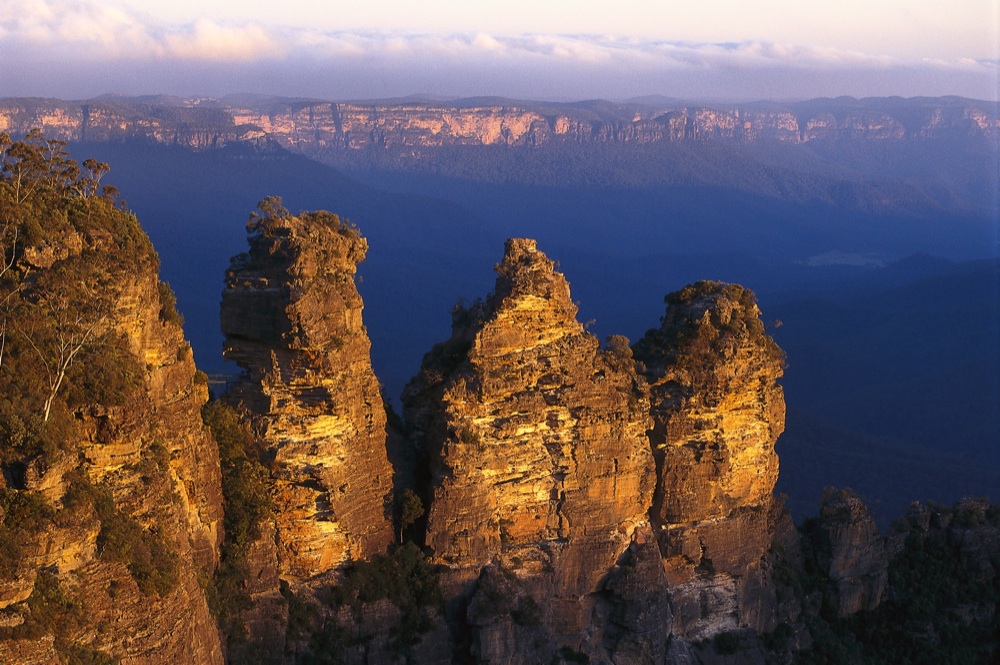 Sono una conformazione di roccia arenaria dichiarata Patrimonio dell’Umanità. Sono prevalentemente composte da una vegetazione ricca di eucalyptus. Essi stillano gocce di olio blu e da questo deriva il nome Blue Mountains (Olycom)