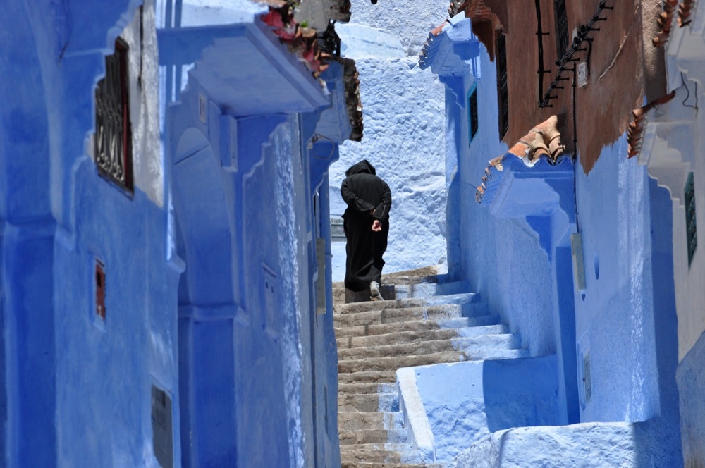 Chefchaouen è un'immersione nell'azzurro: qui strade e case sono dipinte di questo colore, nelle sue infinite gradazioni. Un azzurro intenso, abbagliante, acceso dalla luce limpida del Marocco, che la caratterizza ancora ai giorni nostri, donandole una magica atmosfera (Marocco Magico)