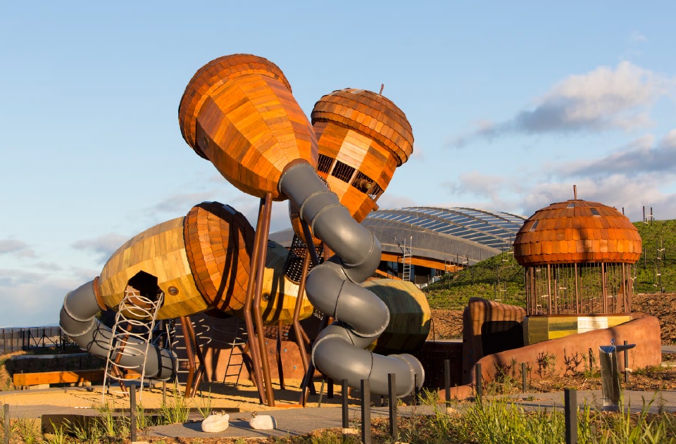Sembra un parco giochi del futuro, ma in realtà è un arboreto a Canberra, in Australia, costruito da Taylor Cullity Lethlean e Tonkin Zulaikha Greer in seguito a degli incendi nel 2001 e nel 2003. Nel 2004 il governo ha lanciato una gara per ripopolare di alberi la zona, e i due studi vincitori hanno proposto l’arboreto denominato ‘100 alberi e 100 giardini’, che ospita tipologie di alberi rari, minacciati o simbolici.