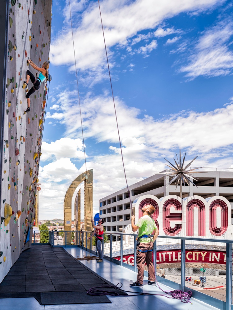 NEVADA. A Reno, il Whitney Peak Hotel attira gli appassionati di arrampicata: dispone di una “climbing gym” di 650 metri quadrati, al coperto (whitneypeakhotel.com)