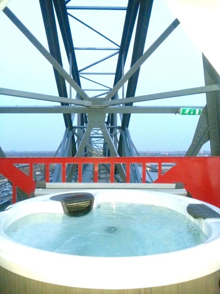 Camere eco su una gru Per chi non soffre di vertigini dormire a 50 metri di altezza su una gru è una vera esperienza per concludere al top la serata. Tra il centro e il porto di Amstedam, più precisamente al molo NDSM che tra il 1894 e il 1979 è stato utilizzato per le grandi operazioni portuali e commerciali della città, si trova la storica ‘gru 13’ restaurata e trasformata in un hotel di lusso per pochi privilegiati. Il Faralda NDMS Crane Hotel, ideato dallo studio d’architettura Edwin Kornmann Rudi, conta solo tre suite tra i 35 e i 45 mq realizzate con materiali riciclati e riciclabili. Una camera è stata ricavata dalla vecchia sala macchine, mentre le altre due sono state realizzate appositamente in vetro. E per chi desidera rilassarsi, tra i comfort dell’hotel c’è anche una vasca idromassaggio esterna con vista sulla città.