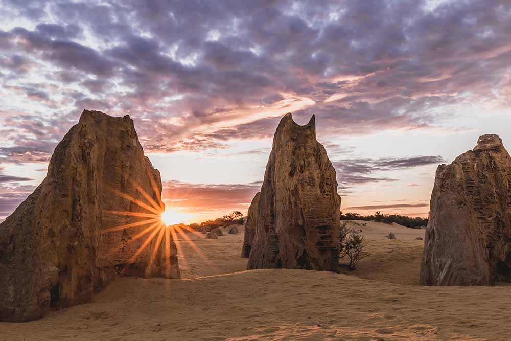 Il deserto Pinnacles Desert è costituito da spettacolari formazioni rocciose e ci si può avventurare in jeep o anche a piedi (attenzione, è facile disorientarsi…), al tempo stesso vi si trova una spiaggia magnifica. Occhio ai canguri: spesso si nascondo all’ombra di un cespuglio o delle rocce e, chi ha la fortuna che piova un giorno (qualcosa di raro, ma può accadere), li si vedono correre, numerosi (sono bravissimi a mimetizzarsi, ma sono presenti in grande quantità). E ci sono addirittura gli emu. Sulla via ci si può fermare al Lobster Shack, una ‘fattoria’ di aragoste, dove si scopre la tradizione della famiglia e si mangia benissimo. Da non mancare è anche una sosta nella caratteristica cittadina di Cervantes e fermarsi ad ammirate il paesaggio del Namburg National Park.