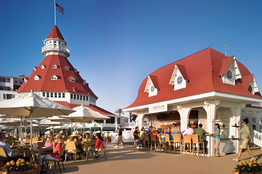 Adesso è animatissimo con tutti i suoi negozi, diversi di elegante abbigliamento maschile, bar e ristoranti, come il contemporaneo 1500 Ocean, il più causal-chic Sun Deck Bar & Grill, la Eno Pizzeria & Wine Bar, mentre spettacolare è il lussuoso brunch nella Crown Room, dove si trova una vasta selezione di pesce e frutti di mare, tra cui ostriche e aragoste, oltre che cocktail d’autore (da provare il Bloody Mary con zampe di granchio). Esiste perfino il Club at The Del, per soli membri, con una sezione separata di ville sulla spiaggia.