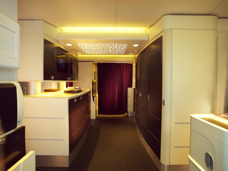 Anche la First Class degli A380 viene ridefinta raggiungendo un nuovo standard d’eccellenza con il lancio di nove appartamenti per velivolo, allestiti sul ponte superiore in una configurazione 1-1, creando il primo corridoio unico in First Class disponibile su un aeromobile.