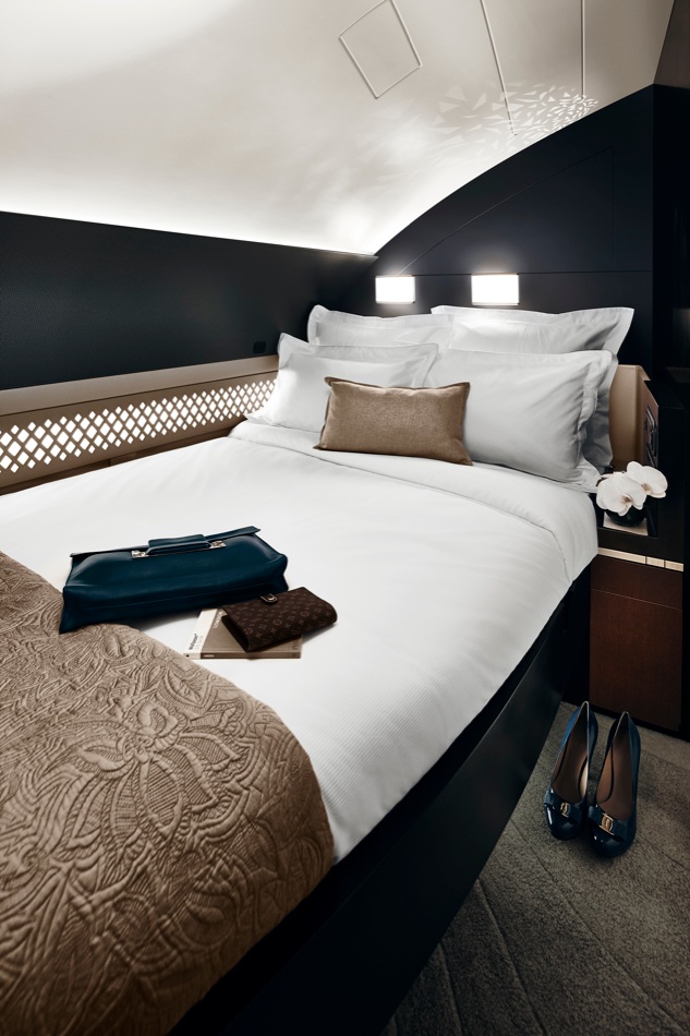 The Residence, allestita sul ponte superiore dei nuovi A380, è in assoluto il più lussuoso spazio a bordo di un velivo e permette livelli di esclusività e privacy totale che normalmente sono prerogativa dei jet privati. Grande 11,6 mq, The Residence può ospitare fino a 2 persone e offre un’area soggiorno, un’area separata con letto matrimoniale lungo 2,08 m e largo 1,2 m e un bagno con doccia.