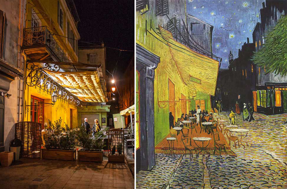 Ci si può avventurare tra le magiche suggestioni di alcuni dei dipinti, come ad Arles, famosa con il suo Cafè Van Gogh per Terrazza del caffè la sera, Place du Forum, realizzato nel 1888 e conservato al Museo Kröller-Müller di Otterlo, e i tre dipinti La camera di Vincent ad Arles, terminati nel 1888 e 1889, e conservati al Van Gogh Museum di Amsterdam (altra meta da non mancare per gli appassionati), all’Art Institute di Chicago e al museo d’Orsay di Parigi. Ad Arles si possono vedere poi posti rappresentati ancora in quadri o importanti per lui, come l’Hospital at Arles (il cui cortile compare in L’Espace Van Gogh), il ponte Langlois Bridge, che il pittore amava per la sua prospettiva giapponese.