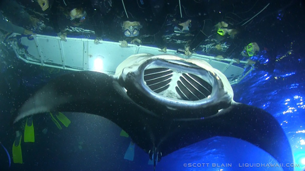 Per un incontro ravvicinato con le mante giganti si può andare presso il porto Honokohau Harbor e prendere parte al Manta Ray Snorkeling Tour di Kona Ocean Adventures che porta alla loro scoperta in piena notte. Vengono illuminate con un effetto incredibile.