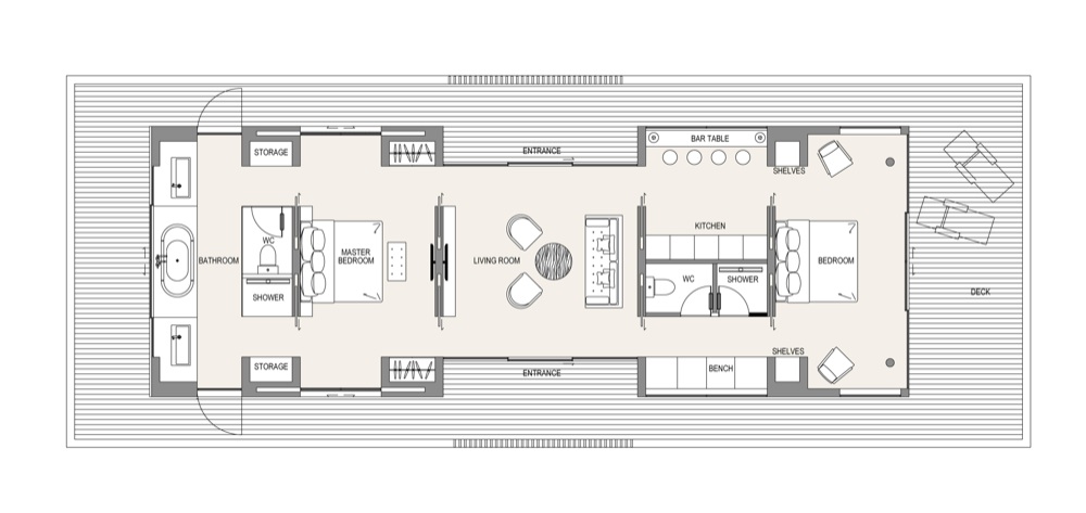 Meno mobile ma comunque trasportabile, invece, la casa galleggiante creata dal designer Dymitr Malcew si ormeggia ovunque facilmente. Tutte le stanze interne consentono l’accesso diretto al terrazzo intorno al perimetro, mentre le pareti in vetro garantiscono una perfetta fusione con l’ambiente circostante. La base della ‘floating house’ è costruita su una piattaforma galleggiante e può essere facilmente spostata da un luogo all’altro. Inoltre, la disposizione interna della casa, i materiali e le finiture possono essere personalizzati a seconda dei gusti e delle esigenze del cliente.