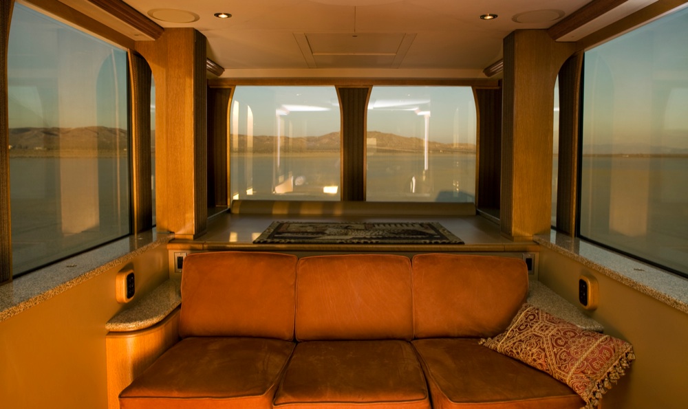 Viaggiare con tutte le comodità di casa, un lusso possibile: The Heat, di Anderson Mobile Estates, è una villa a due piani su ruote, ottima alternativa all’albergo per girare il mondo con stile. A bordo di questa abitazione a 5 stelle ci sono camere spaziose, sala per conferenze, uffici, zona soggiorno e cucina completa. The Heat è rivestito con materiali pregiati, dalla pelle, al legno di quercia al marmo. Molto amato da attori, cantanti e businessmen costretti a muoversi continuamente per lavoro, questa casa di lusso su ruote viene spesso utilizzata anche sui set cinematografici allestiti lontani dai centri urbani. Location perfetta anche per parties e serate danzanti.
