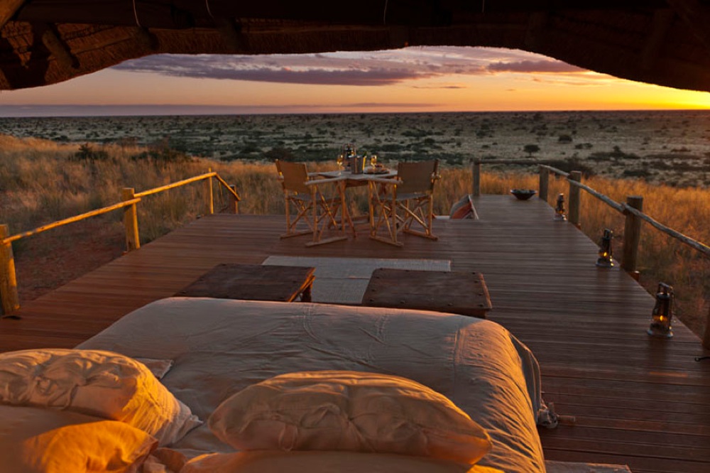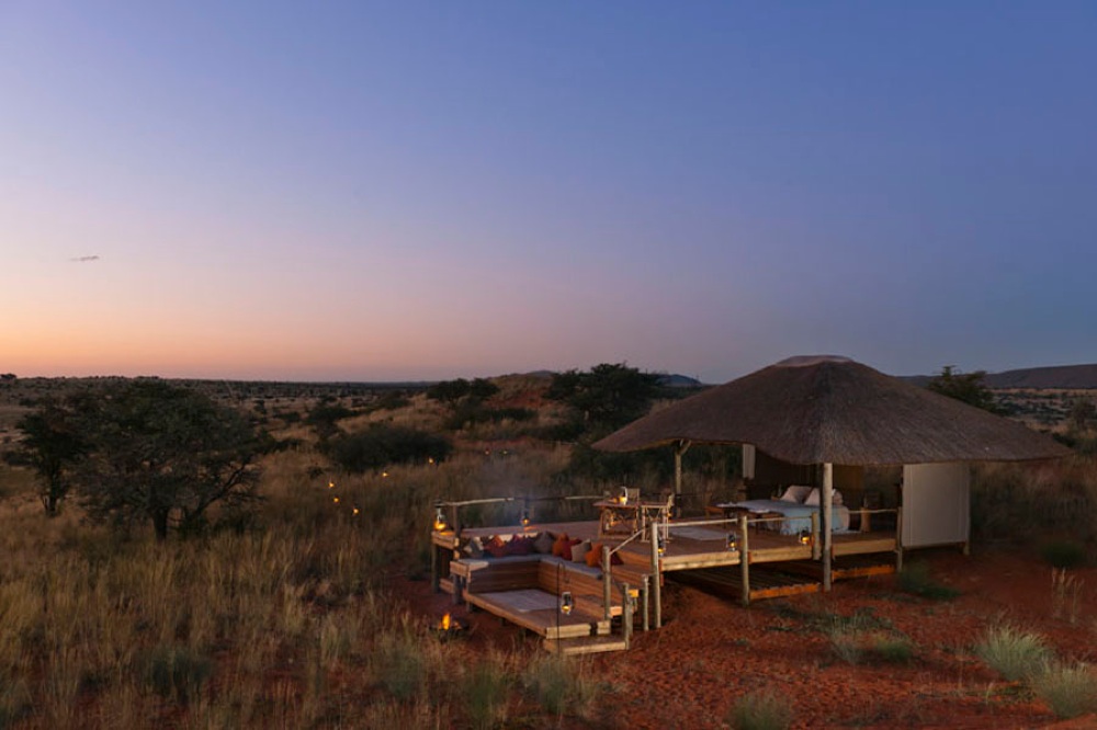 Un letto king-size di lusso è posizionato sul Malori Deck, la piattaforma che si trova nella Tswalu Kalahari Private Reserve nel sud del deserto del Kalahari. La tranquillità che si gode dal Malori (che nella lingua locale significa “sognatore”) è lusso allo stato puro e la privacy è interrotta solo da gazzelle e giraffe. Il tramonto sulla savana è un evento da non perdere, da far seguire da una cena sotto le stelle
