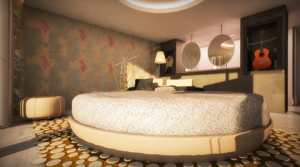 Fedele alla connotazione musicale del brand, le 493 stanze sono a tema e molte (le suite soprattutto) ospitano cimeli appartenuti a star come David Bowie o Bob Marley, che vi soggiornò nel 1978, quando in questo luogo si trovava il modesto Fiesta Don Toni Hotel. I pezzi di memorabilia invadono corridoi, sale e tutti gli spazi comuni del resort, mentre grazie al programma The Sound of your Stay, messo a disposizione a inizio vacanza, è possibile scegliere una playlist con i propri brani preferiti che faranno da colonna sonora per tutto il periodo di permanenza. Chi invece preferisce mettersi alla prova come musicista può utilizzare una delle 20 chitarre Fender, amplificatori e cuffie Nixon per dar vita a jam session e per gli aspiranti dj sono a disposizione set composti da mixer, iPad e cuffie per mixare la musica preferita. Il rok’n roll non si ferma mai, tanto che anche nelle due enormi piscine viene sparato sott’acqua da potenti altoparlanti.