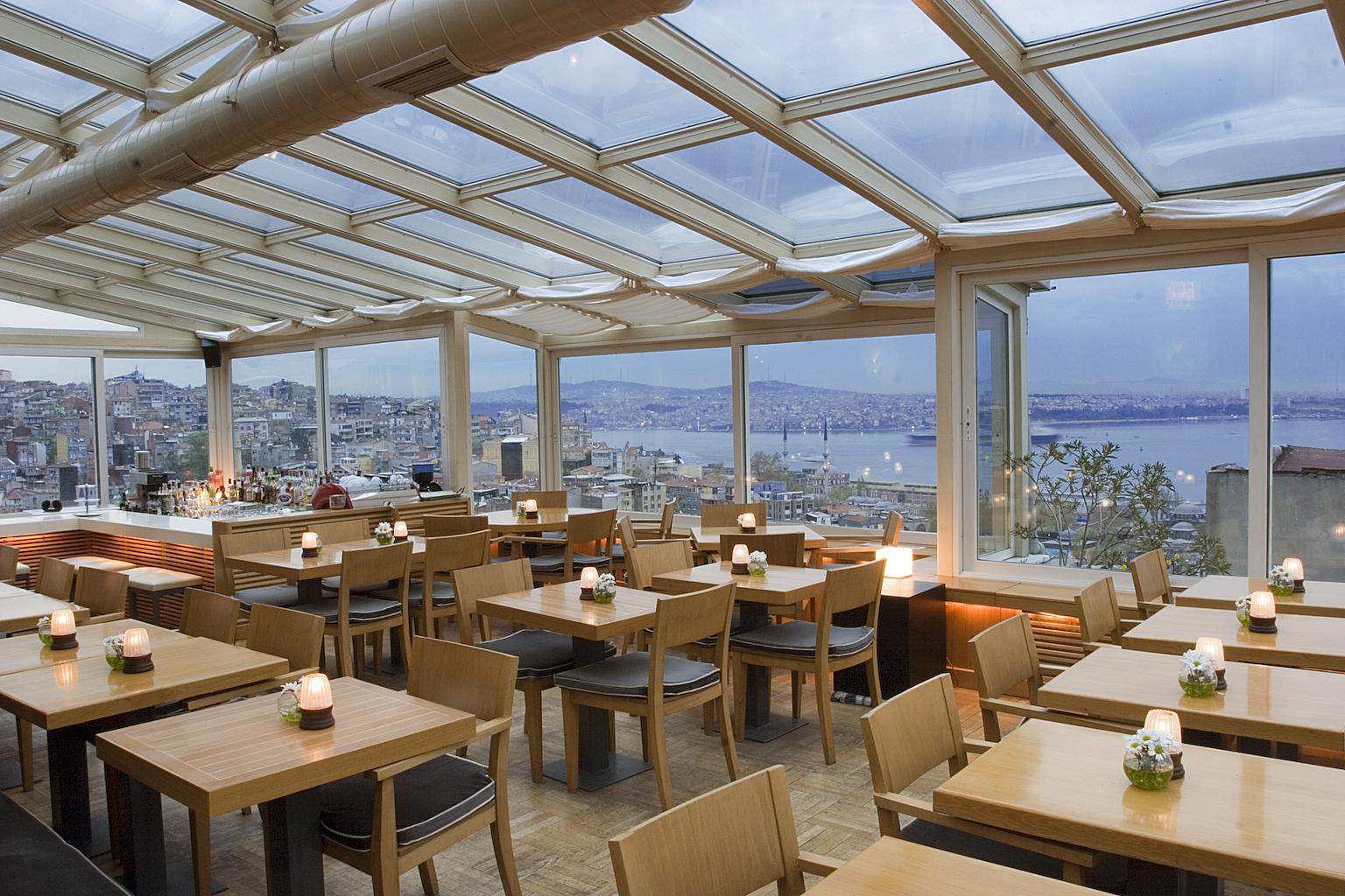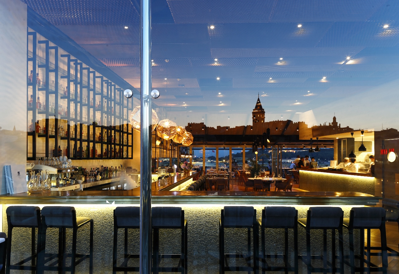 Cucina mediterranea, design moderno e doppia terrazza con doppia esposizione e vista sulla Galata Tower sono gli ingredienti del ristorante Ferahfeza. Gli interni in legno e ottone che riflette le luci sono firmati dal famoso studio ‘I AM Istanbul’.