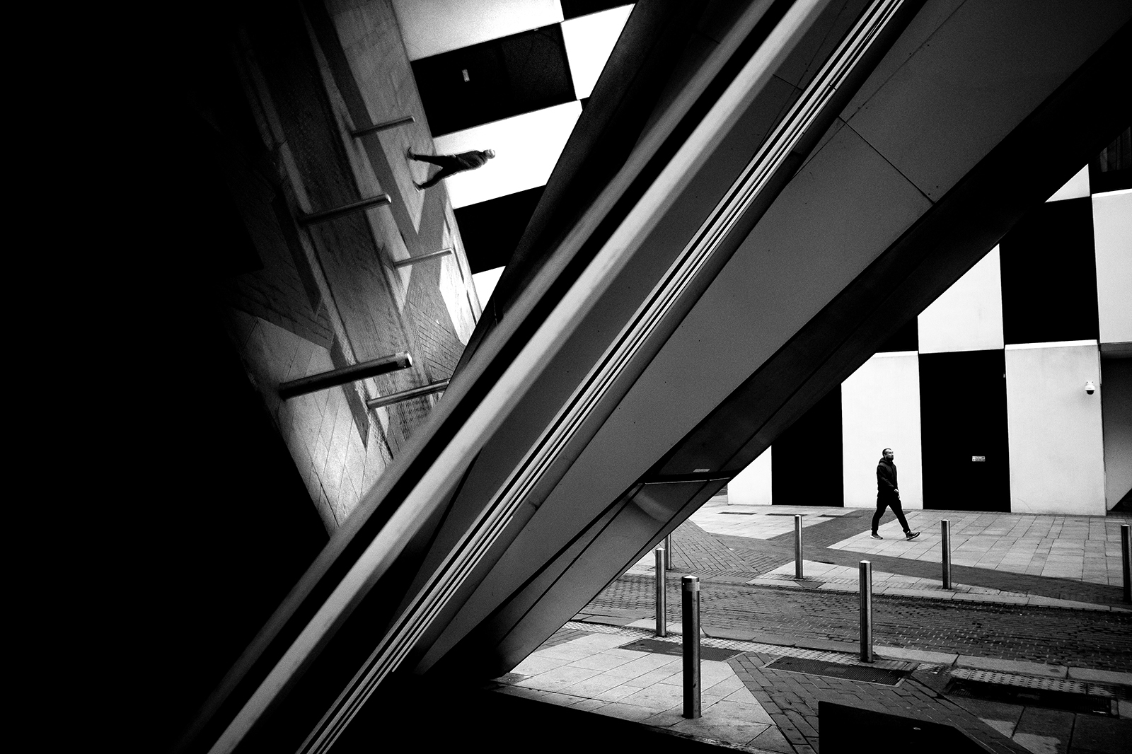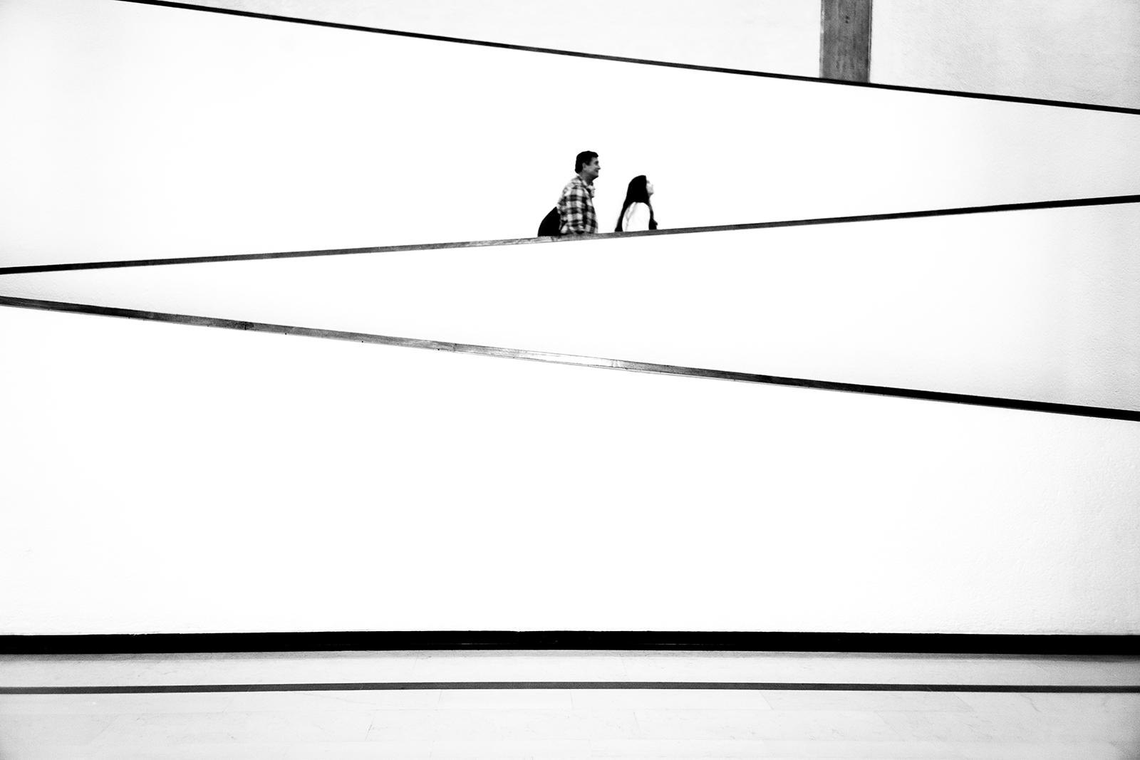 Esistono poi luoghi particolarmente magici per lui: “Mi piace fare foto nei musei delle grandi città: a Londra, Parigi, San Francisco, Parigi, Dublino. I musei di arte moderna offrono spesso una moltitudine di prospettive. Amo giocare con il riflesso e lo spazio vuoto che i musei offrono per giocare con la mente dello spettatore”.