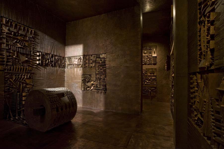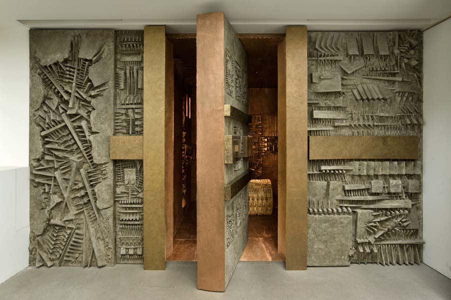 L’opera non è difatti soltanto un luogo fisico, ma anche uno spazio del sapere, antropologico. Stanze temporali in cui si intersecano pareti-soglia dove sono impressi segni e rilievi dal valore astratto, simbolico. Una decompressione temporale e spaziale. Addentrarsi significa fare un viaggio di esplorazione nelle metafore dell’esperienza umana plasmate in bronzo, rame e fiberglass patinato. Un’esperienza totalizzante, evocativa, ai confini del mistico tra le architetture mentali dell’autore, che riflettono quelle di ogni essere umano, tra le rielaborazioni di sculture già note e forme ancora in divenire. Fondate sull’archetipo del labirinto, “luogo ineffabile che ci rimanda all’eterna sfida del segreto della vita e che nei millenni si è manifestato nel mito e nelle arti”.