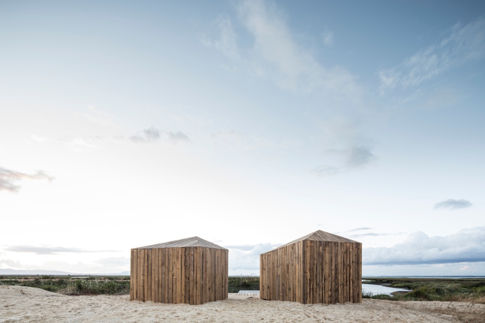 Due capanne, una porta, nessuna finestra. Per scappare dalla città, allontanarsi dal resto del mondo o andare alla scoperta dell’essenziale. Da soli o in due. Sull’estuario del fiume Sado, a un’ora da Lisbona, in un angolo di paradiso conosciuto solo per le spiagge bianche, il vino, il pesce fresco e le risaie a perdita d’occhio, l’architetto Manuel Aires Mateus si è ispirato alle vecchie capanne fatiscenti dei pescatori della zona per realizzare le Cabanas no Rio, due piccoli rifugi di lusso in stile medievale che si specchiano nell’acqua.