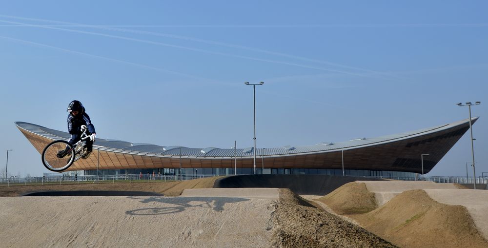 Lee Valley Velopark Per gli amanti della bicicletta c’è il London Velopark, costruito dallo studio Hopkins Architects con ventilazione naturale, alta efficienza energetica e raccolta e distillazione dell’acqua piovana.