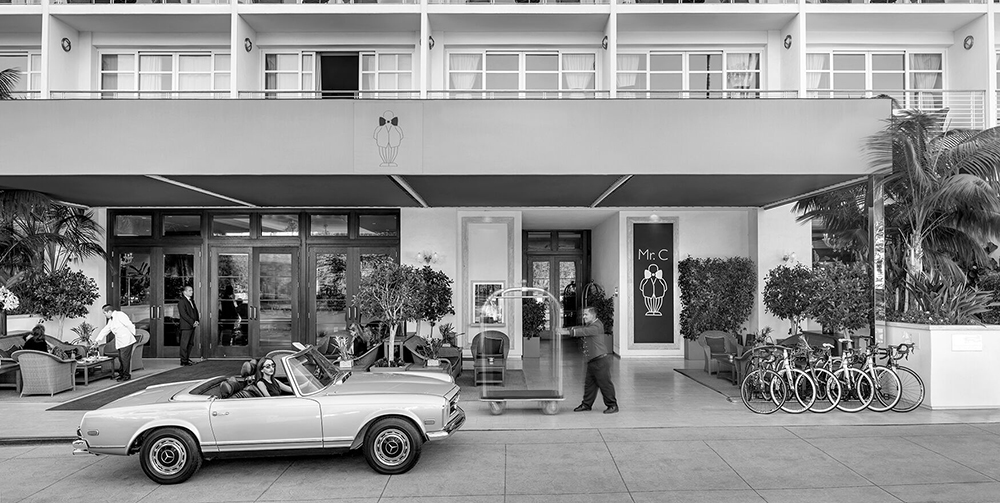 L’hotel Mr C (marchio nuovo, ideato dai giovani rampolli di una nota famiglia, Ignazio e Maggio Cipriani, con l’intenzione di creare qualcosa che rispecchi lo spirito contemporaneo del lusso), che ha aperto da qualche anno a Beverly Hills, è stato capace di portare a Los Angeles un nuovo concetto di glamour raffinato, all’europea. E c’é perfino un tocco di italianità anni 50, con immagini di vecchi film italiani in bianco e nero alle pareti, che si mescola a un forte accento di contemporaneità: tanto legno, vetro e acciaio e balconi che offrono una ‘finestra“ sulla parte più esclusiva della città. Le camere e suite sono ispirate ai motivi di una nave, per ricordare le origini veneziane della famiglia dei suoi ideatori, il ristorante ha portato le specialità della tradizione dei Cipriani, mentre il bar, che si estende anche in salottini della lobby (dove spesso si suona musica jazz dal vivo), ha introdotto il rito dell’aperitivo a Los Angeles. Attorno alla piscina si organizzano diversi eventi: tra questi, il 25 febbraio avranno luogo gli Shorts Awards, premio per i migliori cortometraggi, inclusi quelli nominati all’Oscar, nelle categorie azione, animazione e documentari. Una novità dalla scorso autunno sono le residenze, che si trovano accanto all’hotel, e sono già molto quotate, scelte da molti attori per risiedervi per lunghi periodi. Ogni sera comunque qui si fa festa, e per pranzo il ristorante è sempre popolato di produttori e attori, oltre che uomini d’affari e modelle.
