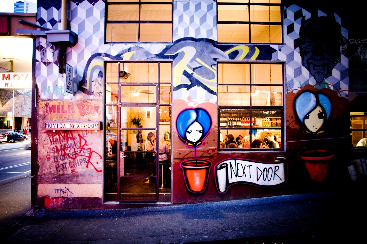 Atmosfera informale e rilassata quella del Movida Next Door, il bar a tapas di tendenza incastonato tra i graffiti della Hosier Lane che rivestono vecchi edifici del 1920 (Mark Chew – Tourism Victoria)