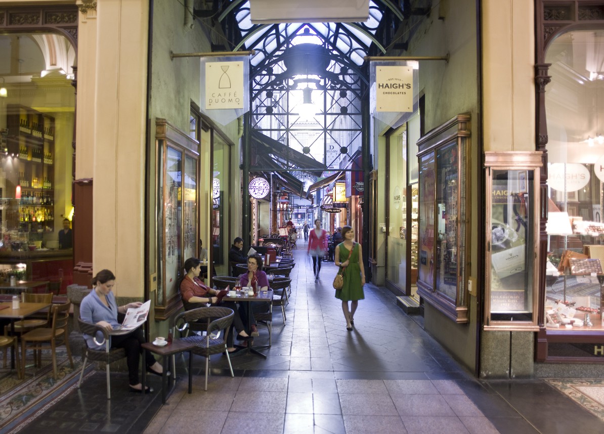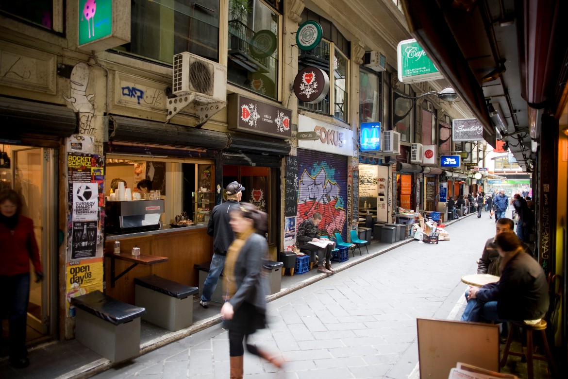 La Block Place è una delle viuzze pedonali più popolari di Melbourne. Si identifica facilmente grazie ai suoi café all'aperto e ai suoi intimi negozietti (Robyn Lea - Tourism Victoria)