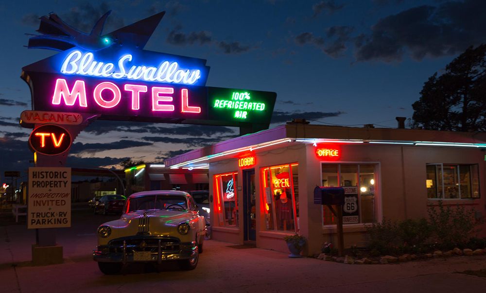 Tucumcari con le sue leggende indiane, i suoi negozi di souvenir e il vicino leggendario Blue Swallow Motel, qui dal 1939.