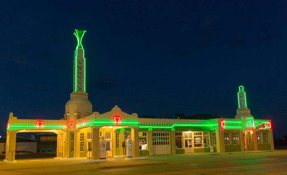 Clinton con l’Oklahoma Route 66 Museum, dove si ammirano auto vintage, un diner degli anni ’50 e perfino un teatro drive-in.