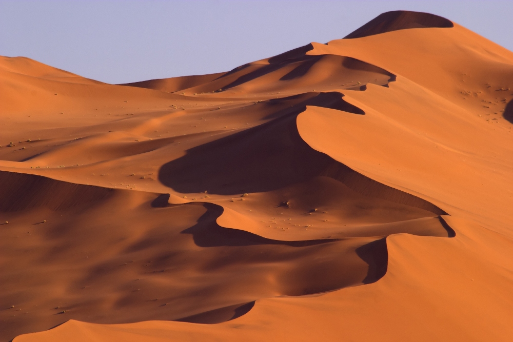 Prima tappa Poco prima dell’alba, raggiungere l’area sabbiosa Sossusvlei nel deserto del Namib dove si trovano le dune più alte del mondo. Poi, fermarsi alla Duna 45 (chiamata così perché si trova al 45º km della strada che conduce da Sesriem a Sossusvlei), scalarla e osservare il sole che sorge è un’esperienza indimenticabile. Il rosa albicocca della sabbia si tinge rosso che con il passare dei minuti s’infuoca. Altre due dune da scalare sono le gigantesche Big Daddy e Big Mum che arrivavano a quasi 400 metri, vere e proprie onde di sabbia fine come cipria.