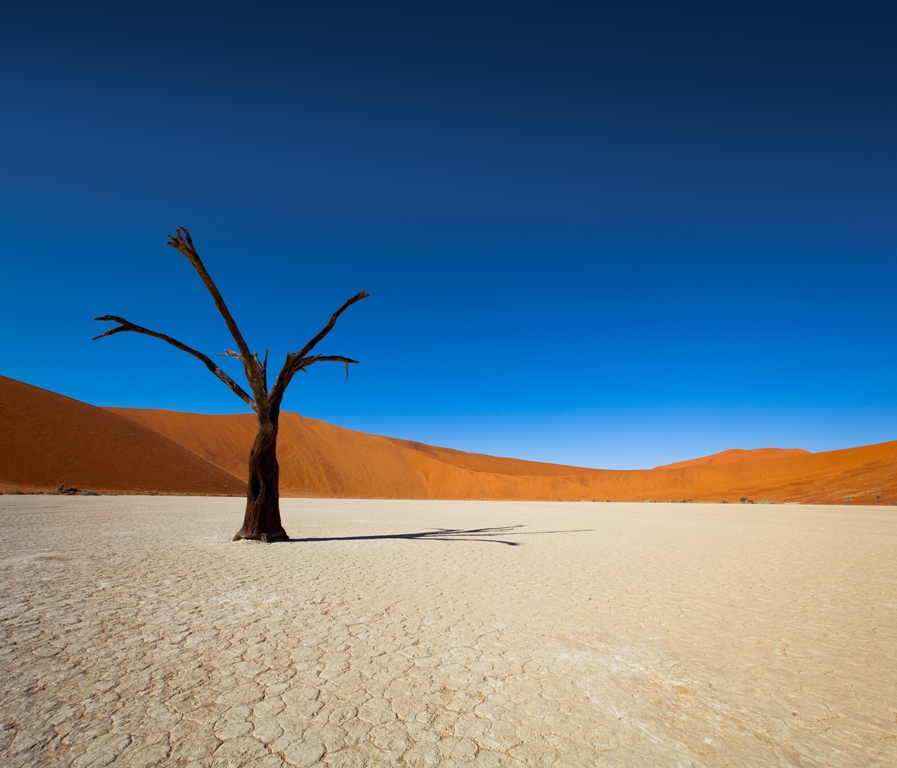 Seconda tappa Il Deadvlei, il pantano argilloso da cui affiorano scheletri d’alberi e circondato da immense dune rosse è tra i paesaggi più fotografati.