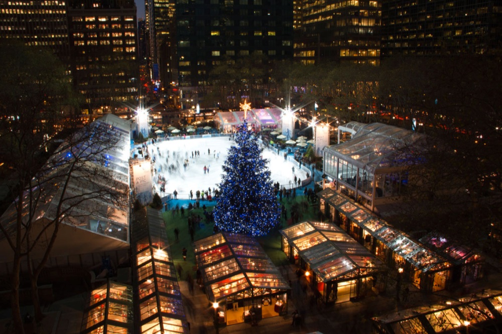 Punti d’incontro del Natale e del Capodanno sono le piste di pattinaggio: la più turistica del Rockefeller Center, quella più alla moda di Bryant Park, con musica caffè e mercatino di bancarelle con prodotti di abbigliamento, gioielleria e artigianato esclusivi, oltre che gastronomici da gourmet, e quella romantica di Wollman Rink a Central Park, vista in tantissimi film tra cui Serendipity.