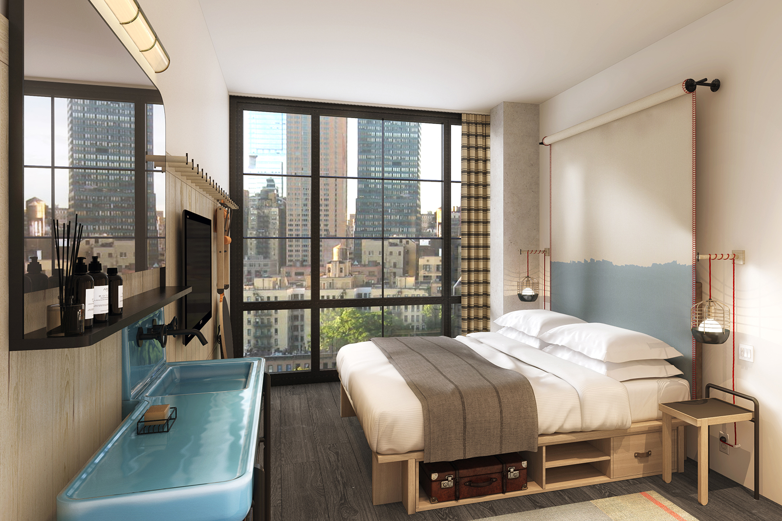 A Midtwon, nel cosiddetto Flower District, il “quartiere dei fiori” il nuovo Moxy Chelsea Hotel riprende questo tema nel design, sposandolo a quello di un’oasi urbana contemporanea. Si sviluppa in dettagli speciali come installazioni di luce LED, con uno spirito che ispira al lavoro come alla voglia di divertirsi e giocare e che ricorda anche, per certi versi, certe opere dello stesso Warhol. Le stanze offrono una vista spettacolare su New York con pareti di vetro, sono dinamiche e funzionali. La gastronomia è curata dal TAO Group e da Francesco Panella. Il Feroce Caffè con porte nello stile dell’hangar di un aeroporto è una pasticceria di ispirazione romana, che serve autentico espresso e cappuccino. Il Feroce Ristorante serve piatti tipici italiani e moderne interpretazioni. The Fleur Room, bar e lounge sul tetto, offre un panorama incredibile e serve drink da favola.