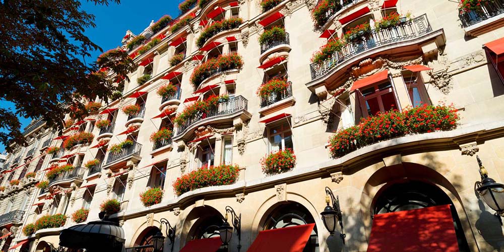 L’Hôtel Plaza Athénée , considerato perfino la meta haute couture e haute cuisine. Le star (tra le tante David Beckham) amano le sue suite, grandi come appartamenti. E’ il prediletto perfino dal grande chef Alain Ducasse che qui ha installato il suo prestigioso ristorante (famoso per colazioni di lavoro e per pranzo anche) e per il suo bar di design, dove si realizzano cocktail iconici e dove vale la pena andare anche se non si dorme qui. Ci vanno tutti gli uomini d’affari di Parigi e i finanzieri, come stilisti e designer, e attori. La spa è il Dior Institute, con trattamenti eccezionali, in un’oasi di puro lusso, mentre su schermi alle pareti si possono rivedere le ultime sfilate di moda. Il fitness center (con un centro perfino per fare pugilato) è aperto al pubblico con una politica di membri (la quota mensile si aggira intorno ai 950 Euro).