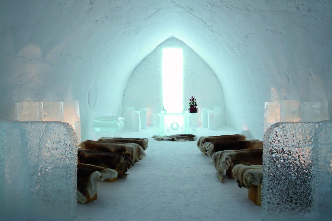 Snow Village Ogni anno si costruisce in autunno e si scioglie con l’arrivo della primavera. È il Villaggio di neve di Lainio, realizzato con 15 milioni di chili di neve e 300 mila chili di ghiaccio naturale e trasparente. Struttura da guinness dei primati, vanta al suo interno un hotel con esclusive stanze e suite nella neve, un ristorante, un cocktail bar, una cappella per le celebrazioni, un cinema. Tutto è di ghiaccio, compresi i letti e le decorazioni delle stanze e anche le innumerevoli sculture realizzate all’interno dello Snow Village con temi che cambiano ogni anno.